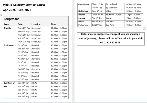 Please find attached the upcoming dates for when the MAS is going to be in your area.